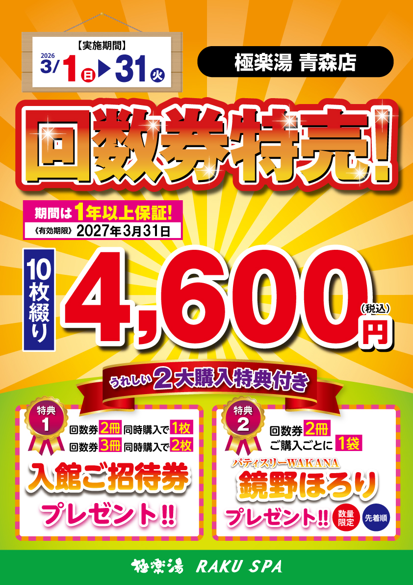 | 回数券 | 10枚綴り 4,600 円[税込] |