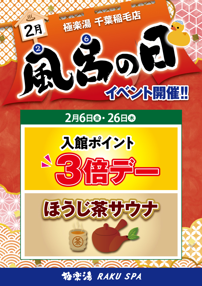 | 営業時間 | 【お風呂】 平日 9:00~27:00(最終入館 26:20) 【お食事処】10:00~26:00 |