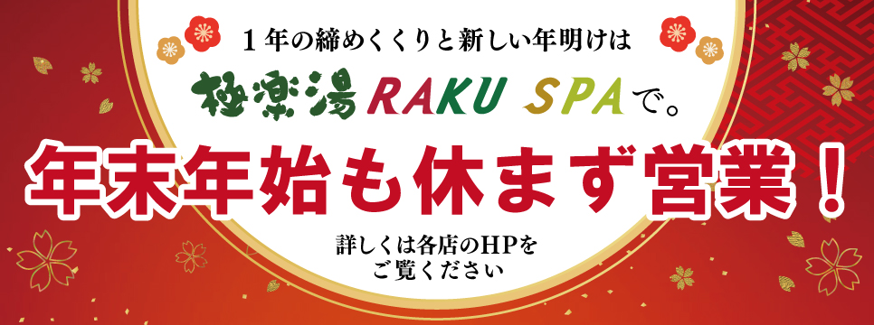 | 備考 | ■12/26~1/4はシーズン料金期間のため、 土日祝料金(大人・子供)に+100円(税込)を頂戴いたします。 ・当店の入館料は現金・QRコード決済となります。 入館回数券のお支払いは現金のみとなっております。予めご了承くださいませ。 ご利用いただけるQR決済は以下の通りとなります。 PayPay、楽天ペイ、d払い、メルペイ、au pay ・土日祝の午前7~9時は朝風呂(料金850円)を実施しております。 ・シーズン料金期間は割増となります
