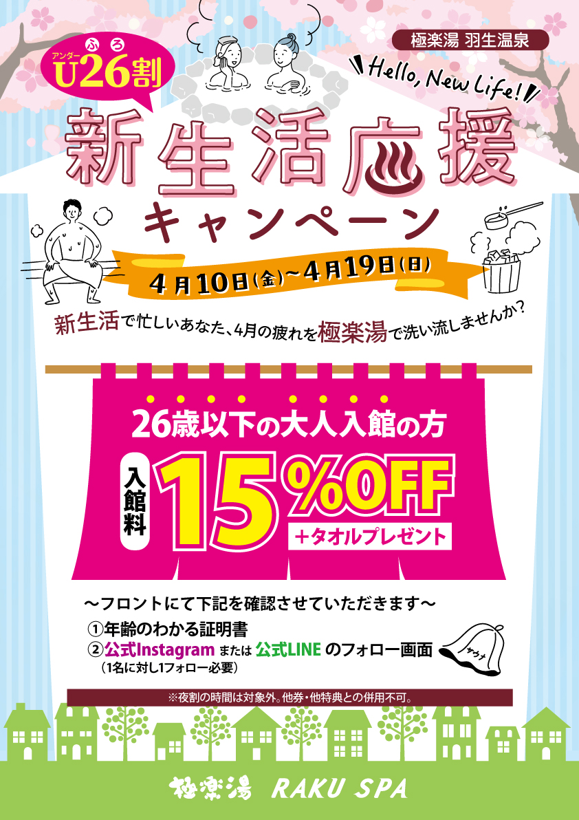 極楽湯タオル:220円 レンタルタオルセット:450円 (フェイスタオル・バスタオル) |