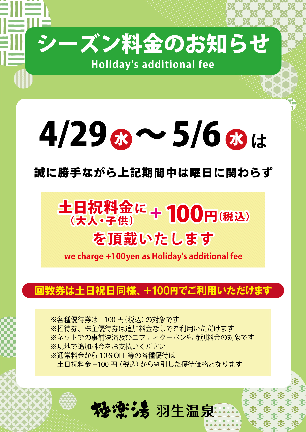 【回数券をお持ちの方は土日祝朝風呂…8時~11時の入館がお得!】 平日回数券をお持ちの方は追加料金なしで入館できます! ※11時以降も、そのままご利用できます。