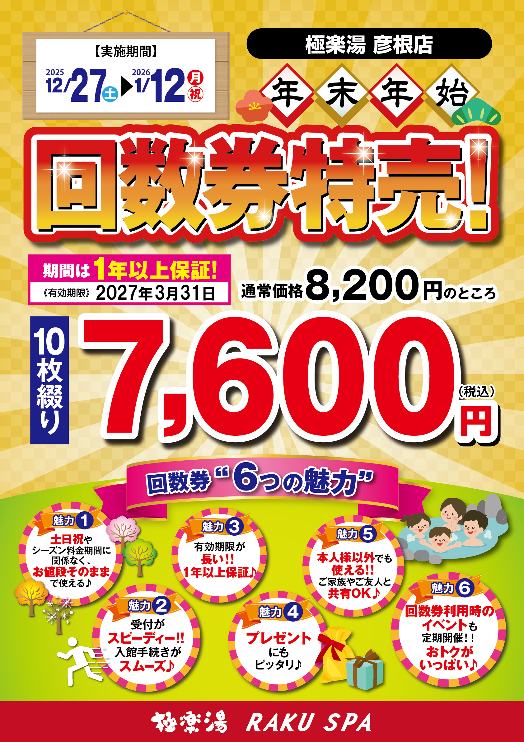 | 回数券 | 10枚綴り 8,200円[税込] |