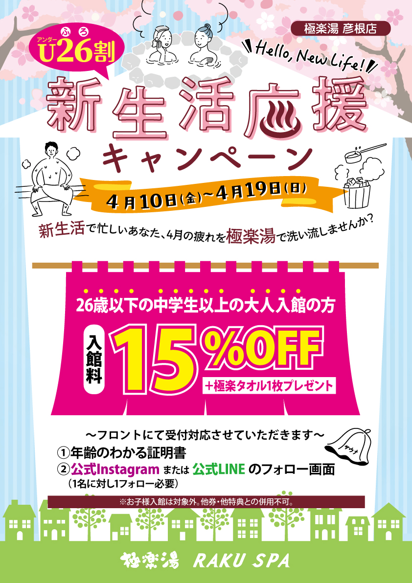 | ※価格はすべて税込表記となっております。 ※3才以下のお子様の入館料は無料です。 ※シャンプー、コンディショナー、ボディソープは備え付けがございます。 |