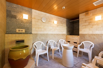 座った状態でジェット噴流を楽しめます。 血行を促進し、疲れやコリに最適です。 肩の力を抜いて泡の流れに身を任せ、冷水枕で頭部を冷やしながらお入りいただきますと、のぼせを防ぎながらゆったり楽しめます。