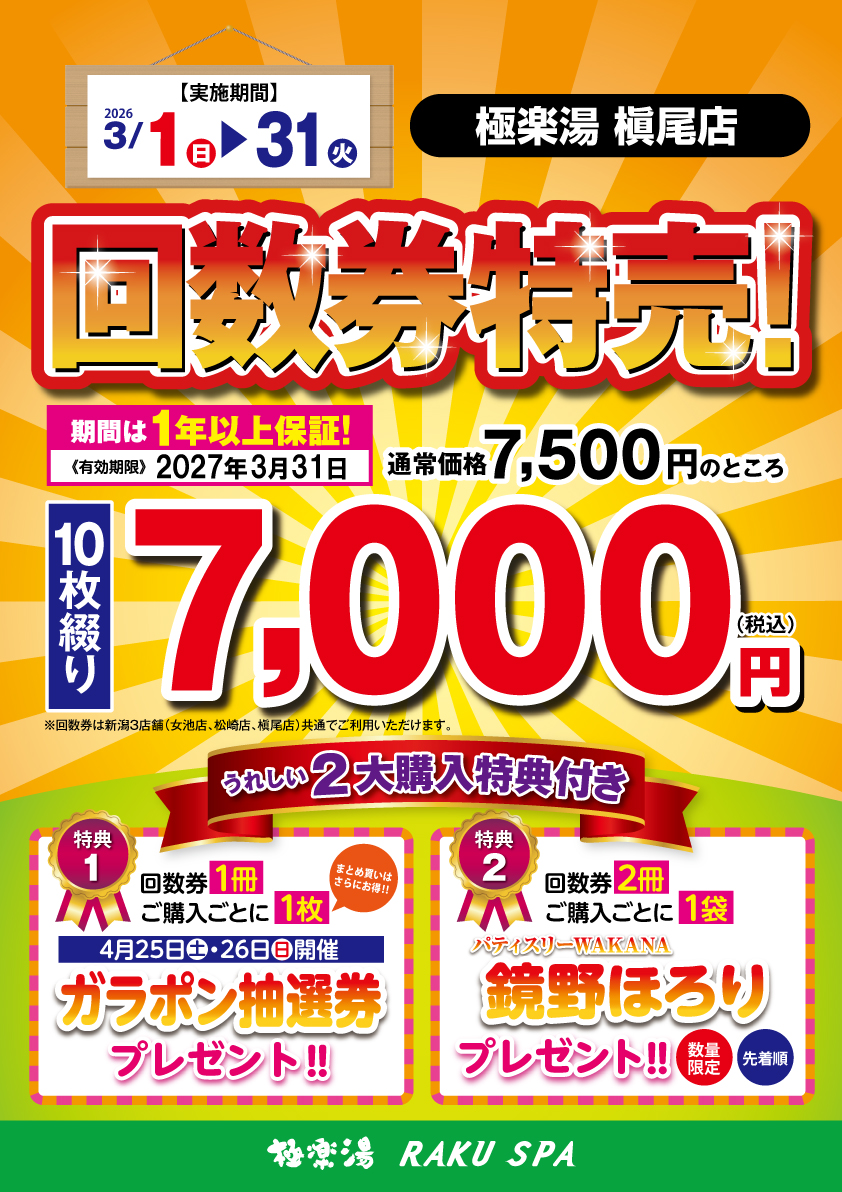 | 回数券 | 10枚綴り 大人 7,500円[税込] |