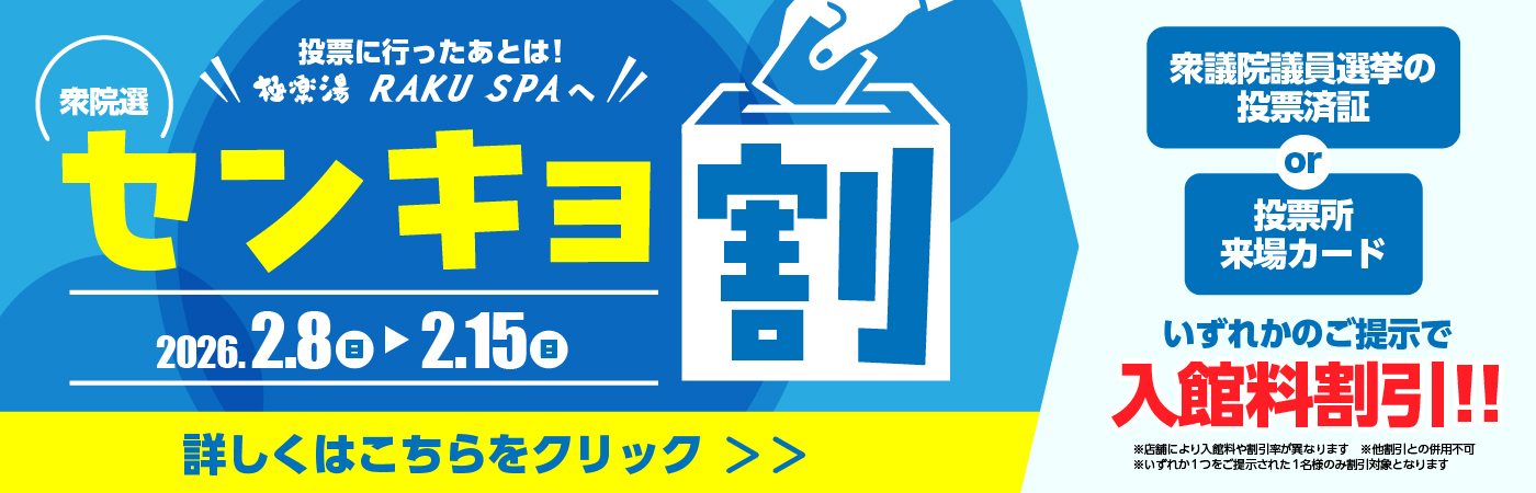 | 備考 | ※お客様の忘れ物に関して※ 2025年10月1日(水)より店内での保管期限を 2週間と致しました。 保管期限の過ぎた忘れ物は随時処分致します。 券売機にてSuica、PASMOなどの交通系IC、 PayPay、auPay、d払いのQR決済 が使えるようになりました! ※クレジットカードはご利用できません ※幼児(2歳以下)のお子様は無料です。 ※身長120センチまで、または6歳までのお子様は混浴可能です。 ※身長120センチを超える、または7歳以上のお子様は混浴を ご遠慮ください。 ※シャンプー、コンディショナー、ボディソープは 備え付けがございます。 ※タオルは入浴料に含まれておりません。お持ち頂くか、 有料レンタル(400円)・販売品(220円)をご利用下さい。 ※ドライヤーは有料です。