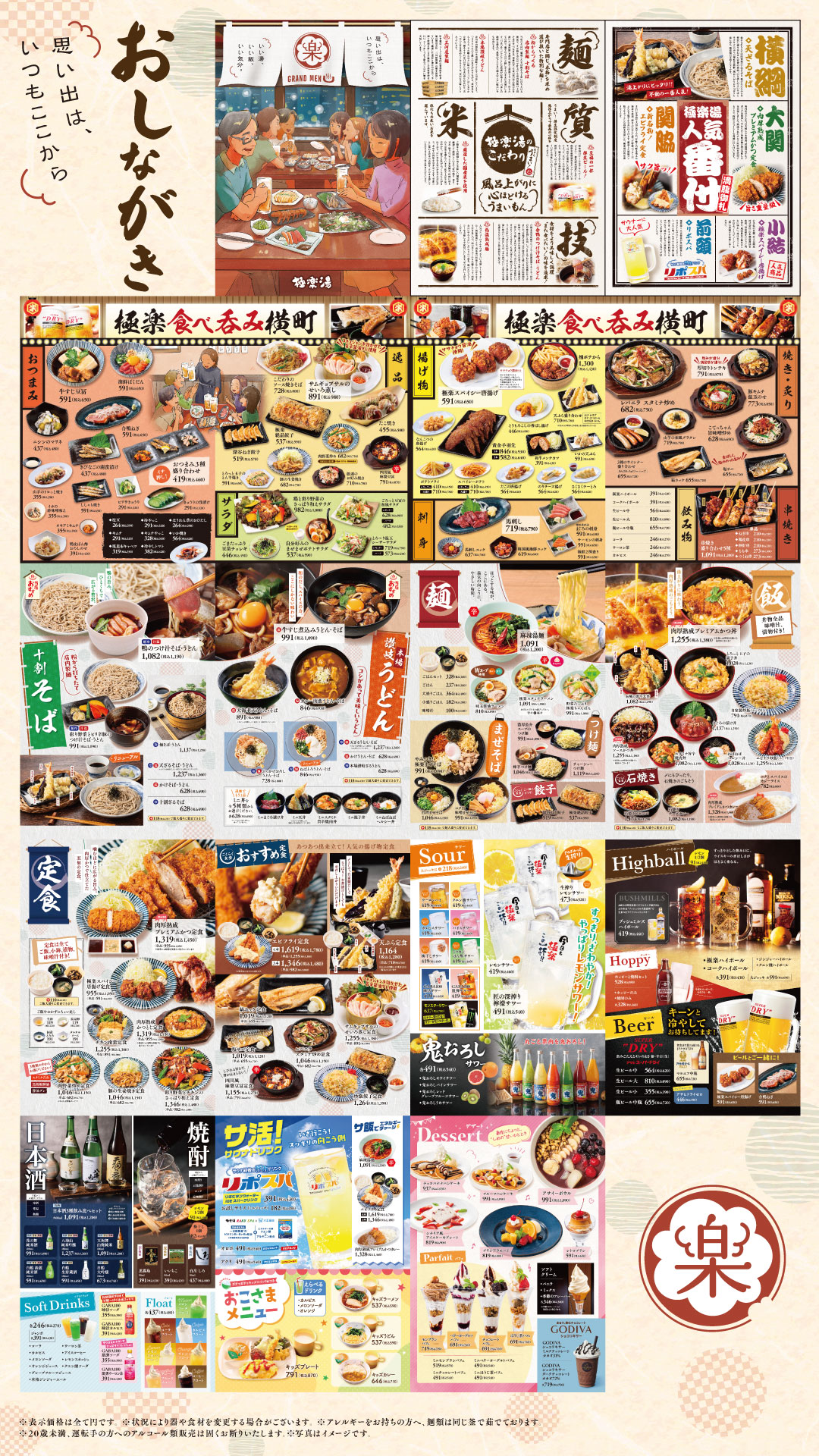 通常営業は下記になります。 平日 9:00~26:00 (最終受付 25:20) 土日祝 6:00~26:00 (最終受付 25:20) 【お食事処】
