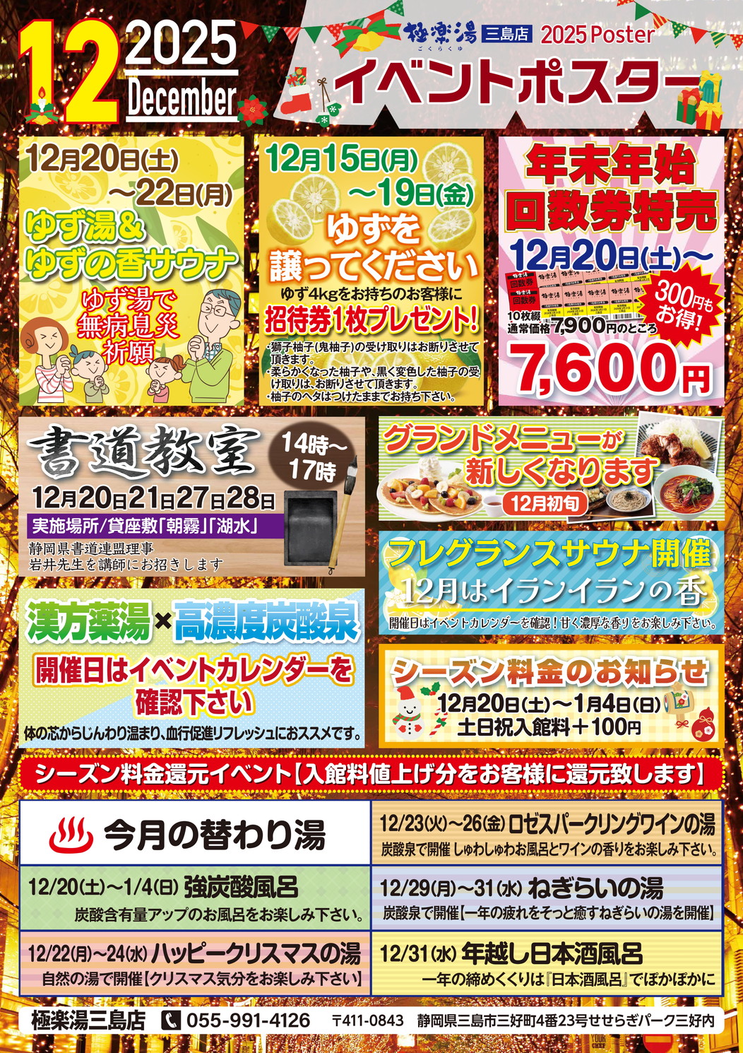 | アクセス方法 | ■JR沼津駅、三島駅発着の便利な無料送迎バスを運行中。 ■最寄駅情報:伊豆箱根鉄道 三島広小路駅より徒歩で約15分 ■三島駅発の路線バスをご利用の方は以下のバスをご利用ください。 最寄のバス停①:三島駅の1番のりば 旧道経由・沼津駅行き 加屋町 ■三島市営の巡回バスもご利用いただけます。 ※三島駅始点に約45分ごとに1本運行しております ※東回西回りともに、せせらぎパーク三好で下車して徒歩30秒 ※1名1乗降200円です 三島観光のお帰りにはぜひ極楽湯三島店にお立ちよりください。 |