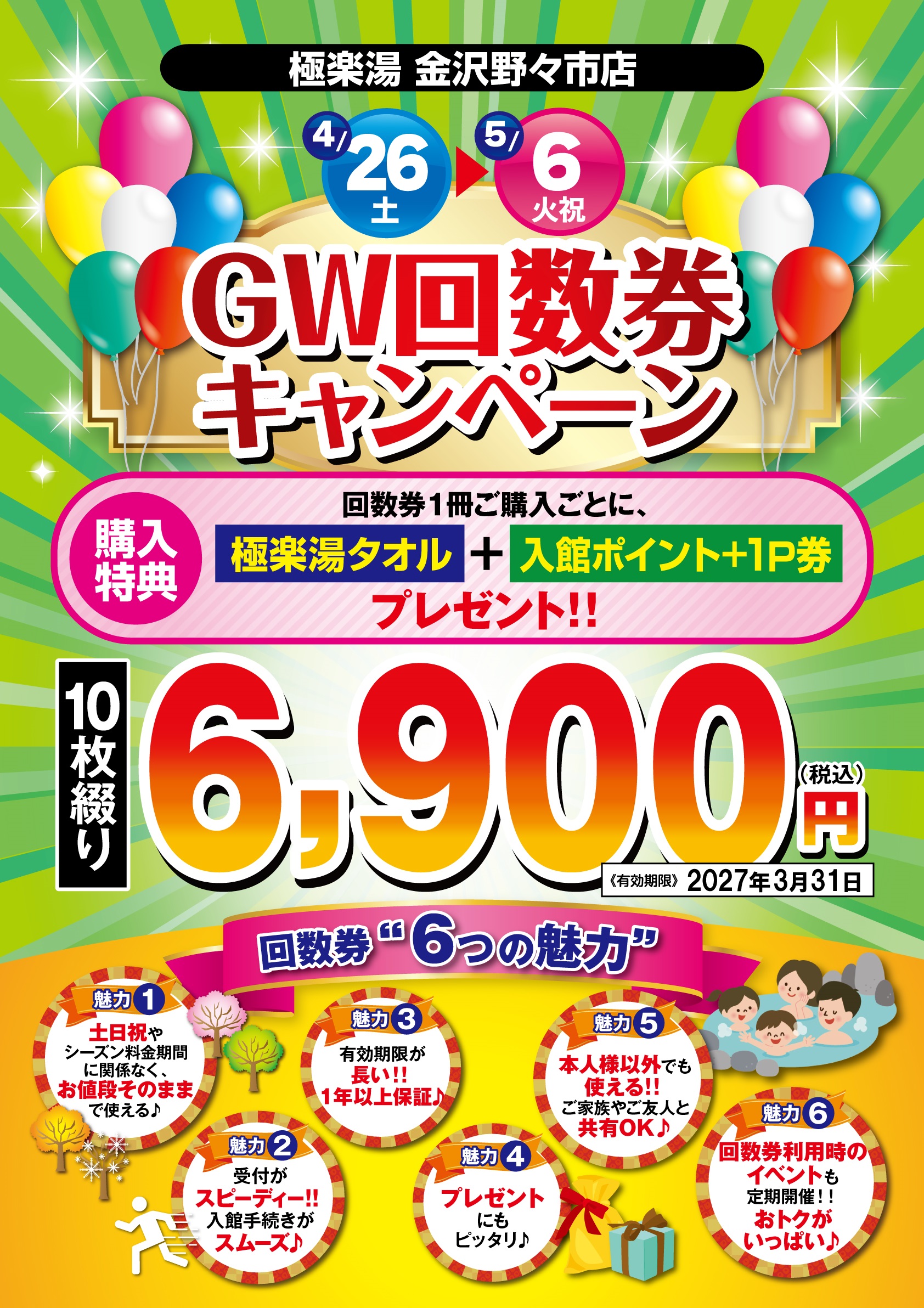 ・入浴料金のお支払いは現金のみとなります ・お食事、リラクゼーション、理容、物販利用時はQR決済、クレジットカード、電子マネー、利用可 ・シャンプー・リンス・ボディソープは備付けがございます ・タオルは入浴料に含まれておりません。ご自身でお持ちいただくか、店舗にてご購入ください ・入れ墨、ファッションタトゥー、タトゥーシールのある方のご入館をお断りしています。ペイントも落としていただきます ・小学生以下のお子様は保護者同伴にてご利用ください ・高校生のご利用は、保護者不在の場合22時までとなります ・中学生のご利用は、保護者不在の場合18時までとなります ・土日祝の午前6~9時は朝風呂(料金750円)を実施しております ・シーズン料金期間は表示価格より割増となります 詳しくは案内をご確認ください |