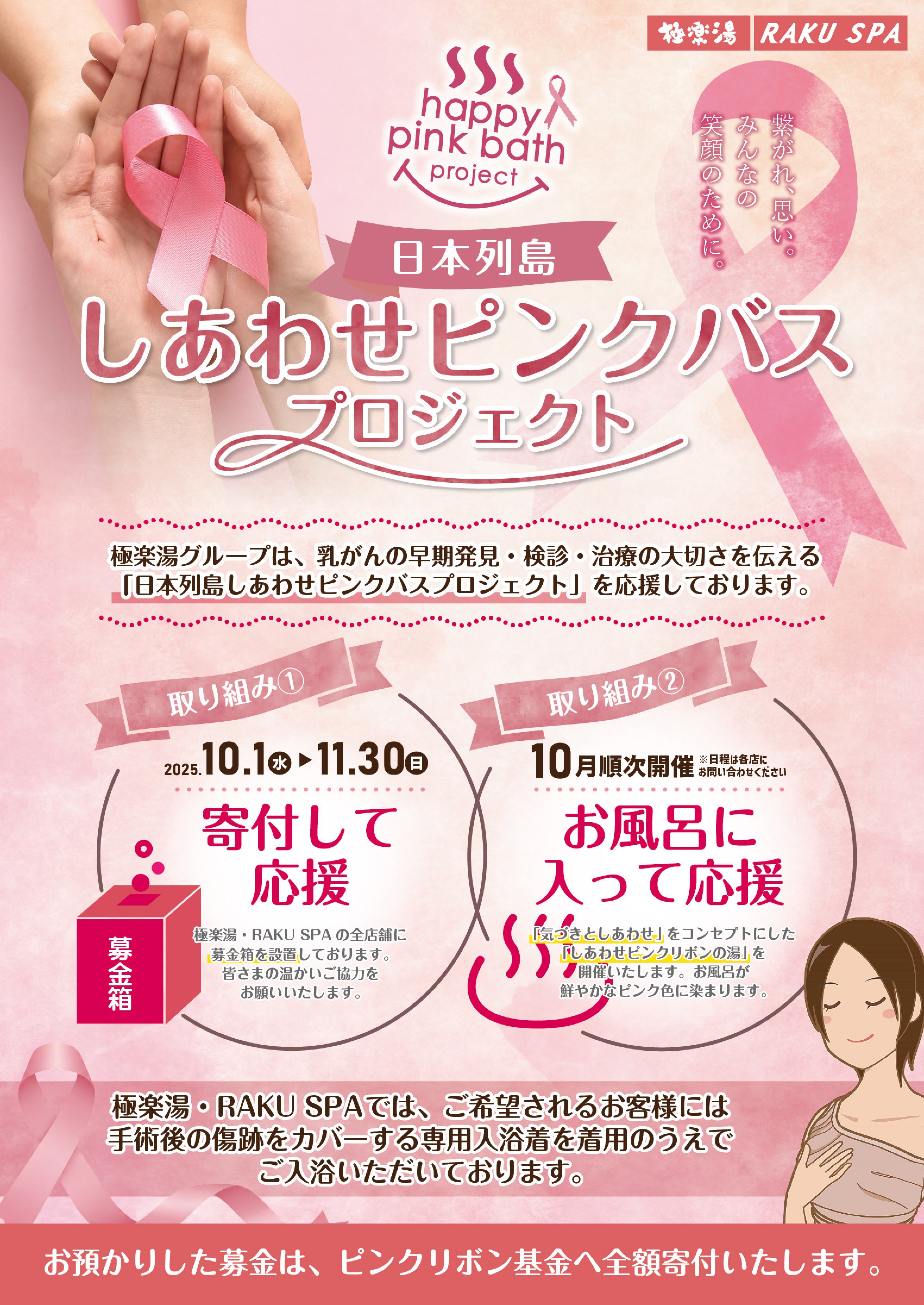 ・入浴料金のお支払いは現金のみとなります ・お食事、リラクゼーション、理容、物販利用時はQR決済、クレジットカード、電子マネー、利用可 ・シャンプー・リンス・ボディソープは備付けがございます ・タオルは入浴料に含まれておりません。ご自身でお持ちいただくか、レンタルバスタオル・販売品フェイスタオル(共に220円)をご利用ください ・入れ墨、ファッションタトゥー、タトゥーシールのある方のご入館をお断りしています。ペイントも落としていただきます ・小学生以下のお子様は保護者同伴にてご利用ください ・高校生のご利用は、保護者不在の場合22時までとなります ・中学生のご利用は、保護者不在の場合18時までとなります ・土日祝の午前6~9時は朝風呂(料金750円)を実施しております ・シーズン料金期間は表示価格より割増となります 詳しくは案内をご確認ください |