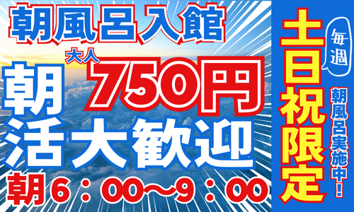 ・入浴料金のお支払いは現金のみとなります ・お食事、リラクゼーション、理容、物販利用時はQR決済、クレジットカード、電子マネー、利用可 ・シャンプー・リンス・ボディソープは備付けがございます ・タオルは入浴料に含まれておりません。ご自身でお持ちいただくか、店舗にてご購入ください ・入れ墨、ファッションタトゥー、タトゥーシールのある方のご入館をお断りしています。ペイントも落としていただきます ・小学生以下のお子様は保護者同伴にてご利用ください ・高校生のご利用は、保護者不在の場合22時までとなります ・中学生のご利用は、保護者不在の場合18時までとなります ・23時以降は、保護者同伴の場合であっても、18歳未満(青少年)のお客様のご利用はできません ・夜間はお子様の安全確保のため、状況によりスタッフよりお声がけをさせていただく場合がございます ・シーズン料金期間は表示価格より割増となります 詳しくは案内をご確認ください |