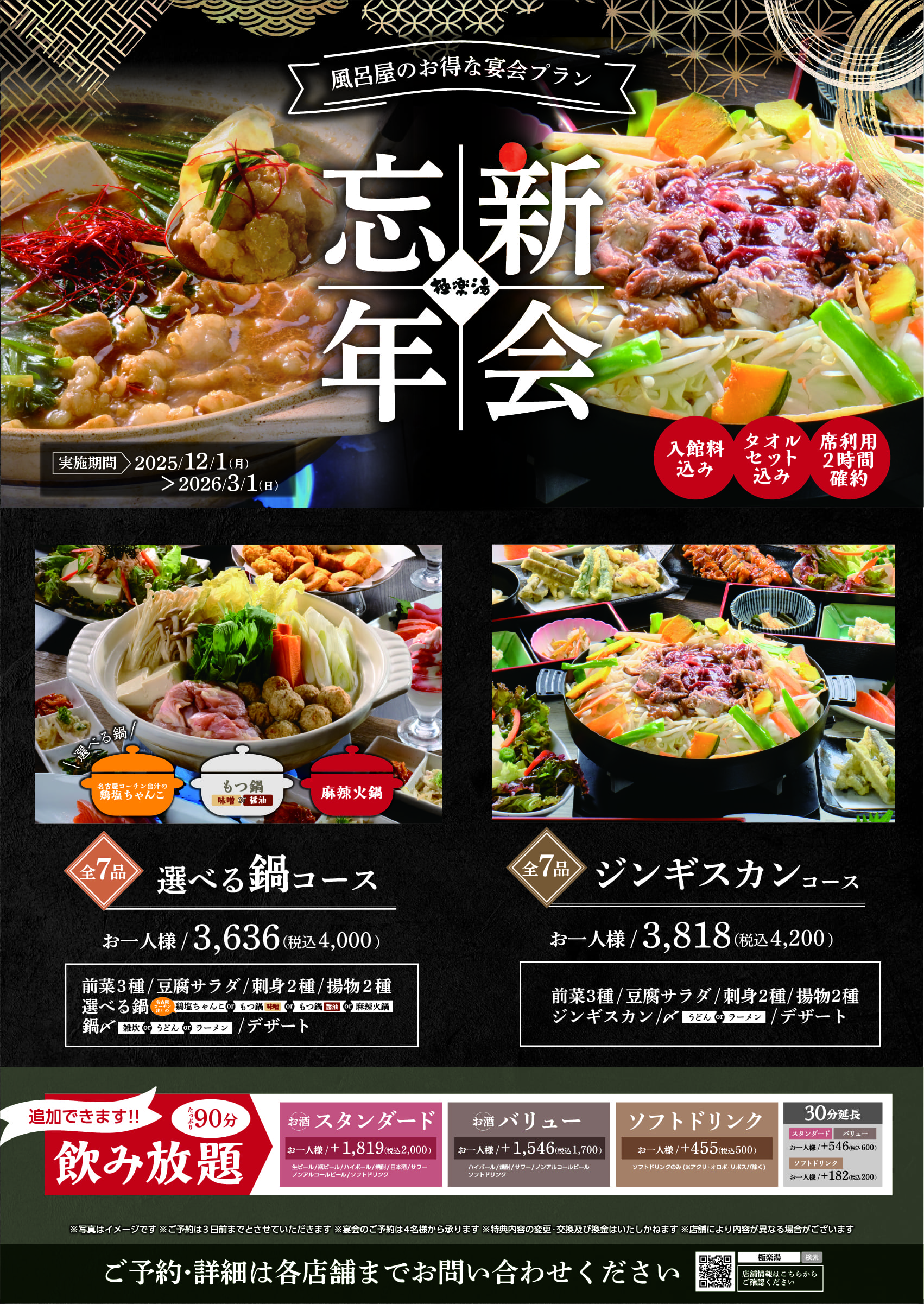 | 営業時間 | ★営業時間 平 日:9:00~25:00(最終受付 24:00) 岩盤浴:最終受付23:30