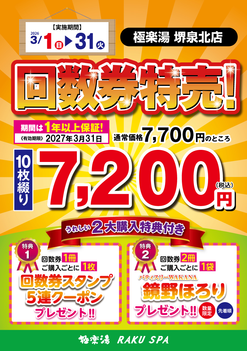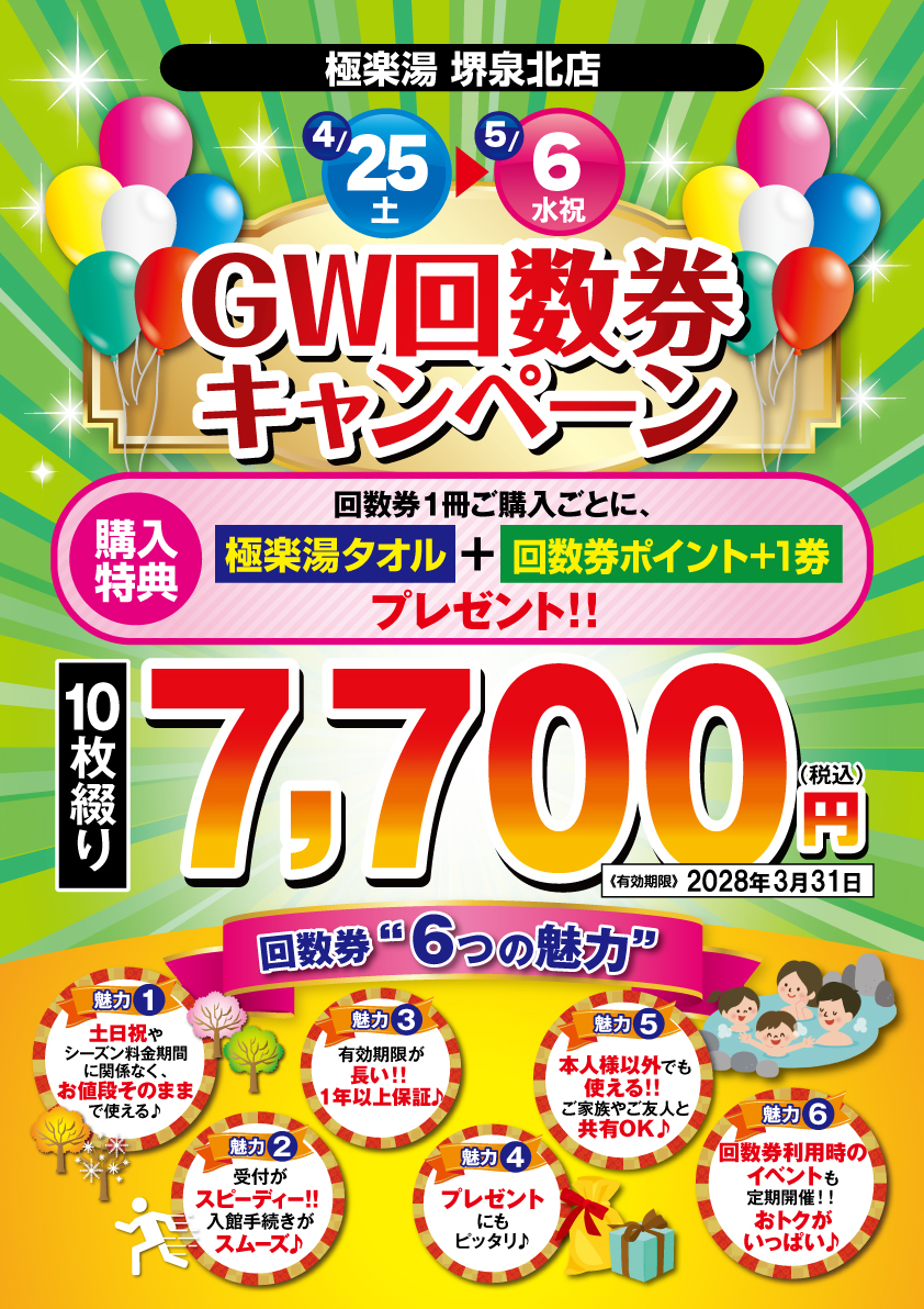 | 回数券 | 10枚綴り 7,700 円[税込] ※1回当たり最大210円お得! ※回数券はどなたでもご購入できます。 |