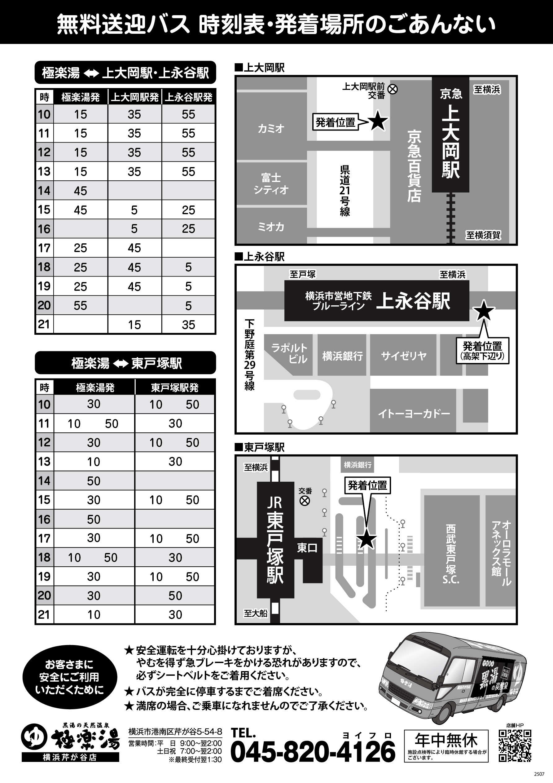 | 電話番号 | 045-820-4126 ほぐし処・あかすり直通:045-821-4207 カットサロン直通:045-826-4638 |