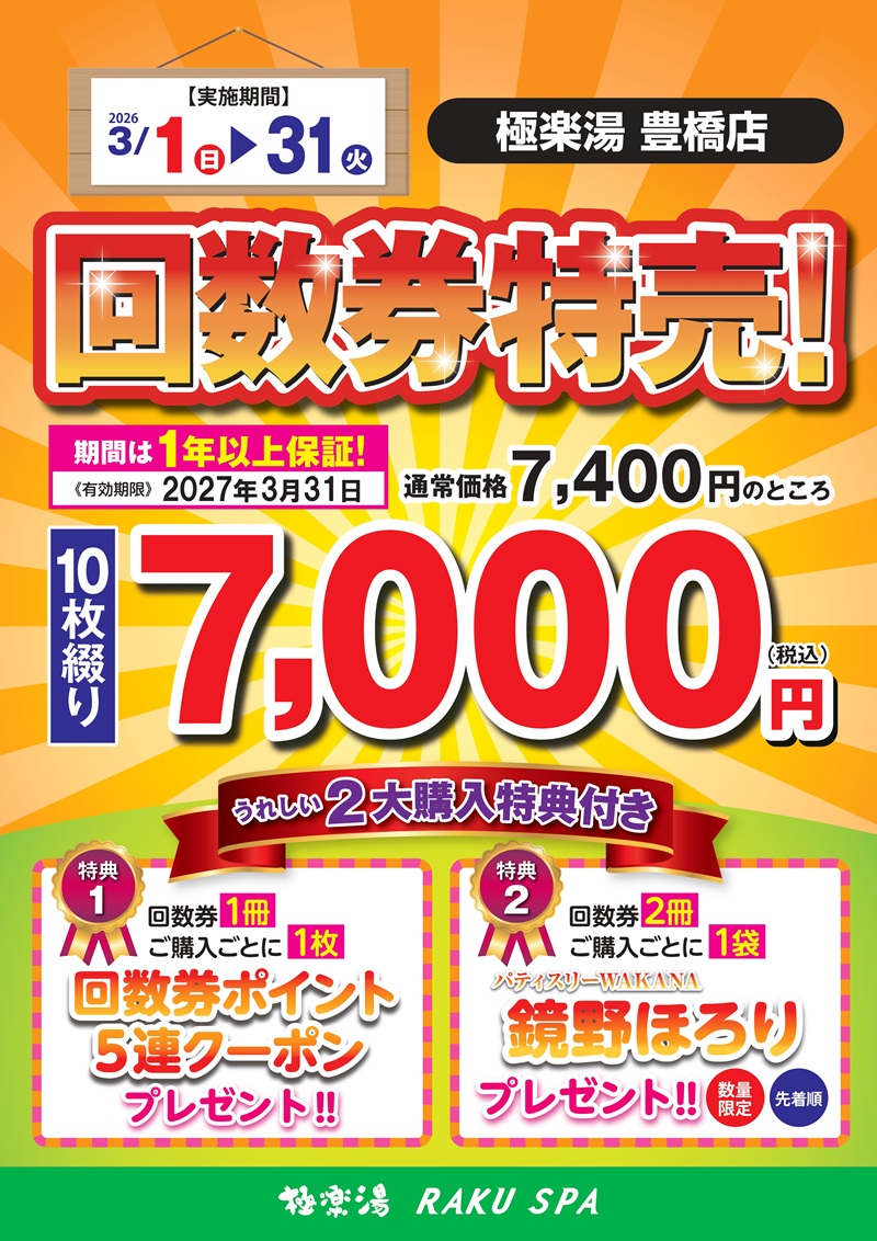 | 回数券 | 10枚綴り 7,400円[税込] |