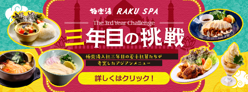 | ★表示は税込です ★3才以下のお子様は入館料無料! (おむつの取れていないお子様はベビーバス無料貸し出し!) ★はぐみんカードご利用いただけます! ★お食事・リラクのみのご利用は入館無料!(詳細はこちら)※コラボメニューご注文の際はご入館料が必要となります。 ★ランニング&スパ利用OK!(詳細はこちら) |