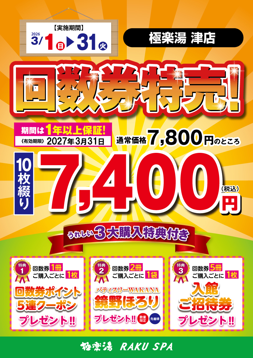 | 回数券 | 10枚綴り 7,800円[税込] | ||||||||