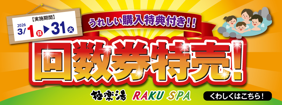 | ※価格はすべて税込表記となっております。 ※3才以下のお子様の入館料は無料です。 ※入館料及び入浴回数券のお支払いは、現金のみです。券売機にてチケットをご購入ください。 2026年3月27日(金)~29日(日)は、特別料金期間です。土日祝日料金+100円頂戴いたします。 |