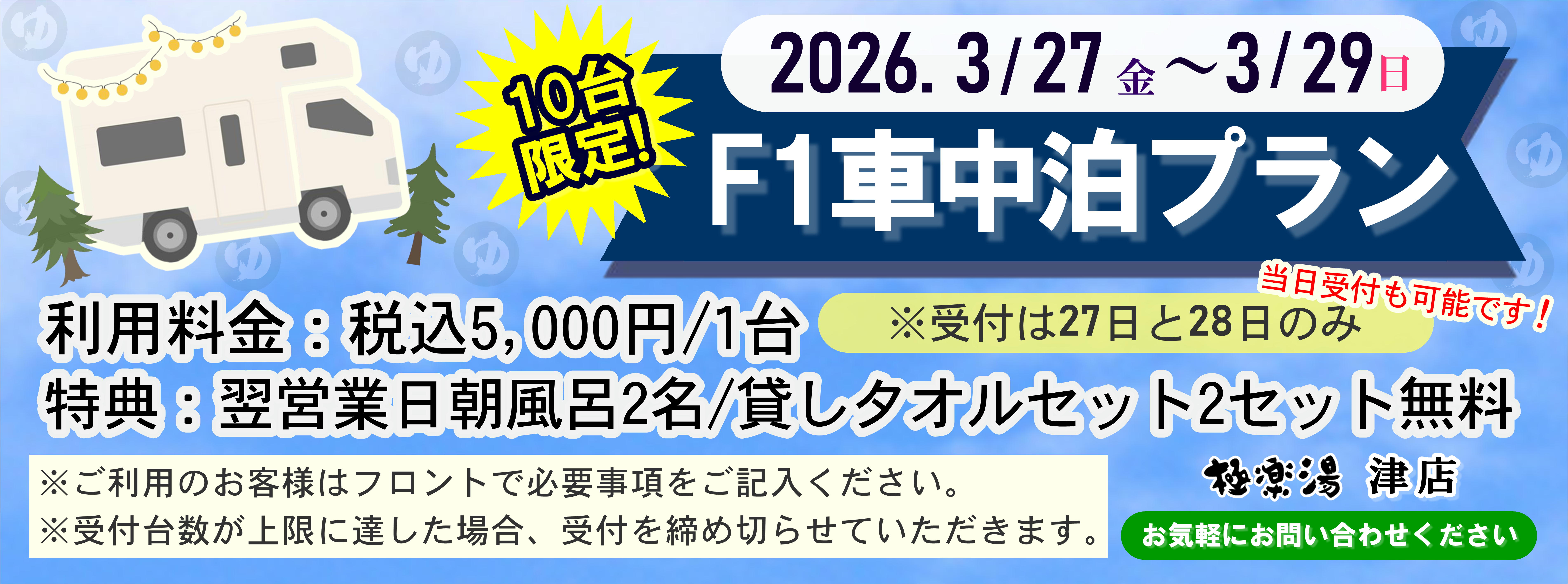 | 営業時間 | 午前9:00~翌2:00(最終受付 翌1:20) ※毎週土日は朝6時~営業