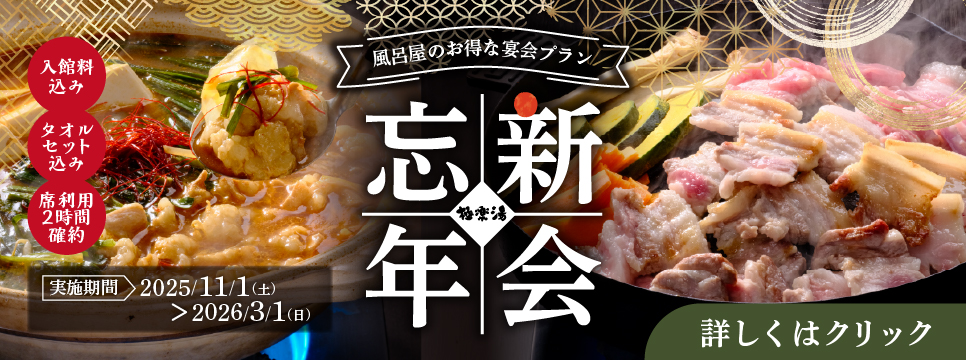 | 営業時間 | 平日:9:00~26:00(最終受付 25:20) リラクゼーション~体いやし處~ 予約番号:048-469-6641(受付時間 10:00~24:00) アカスリ~Sube Sube Sube~ 予約番号:048-451-4126(受付時間 9:00~24:00) 髪美粧予約番号:048-466-3814(最終受付:20時45分) |
