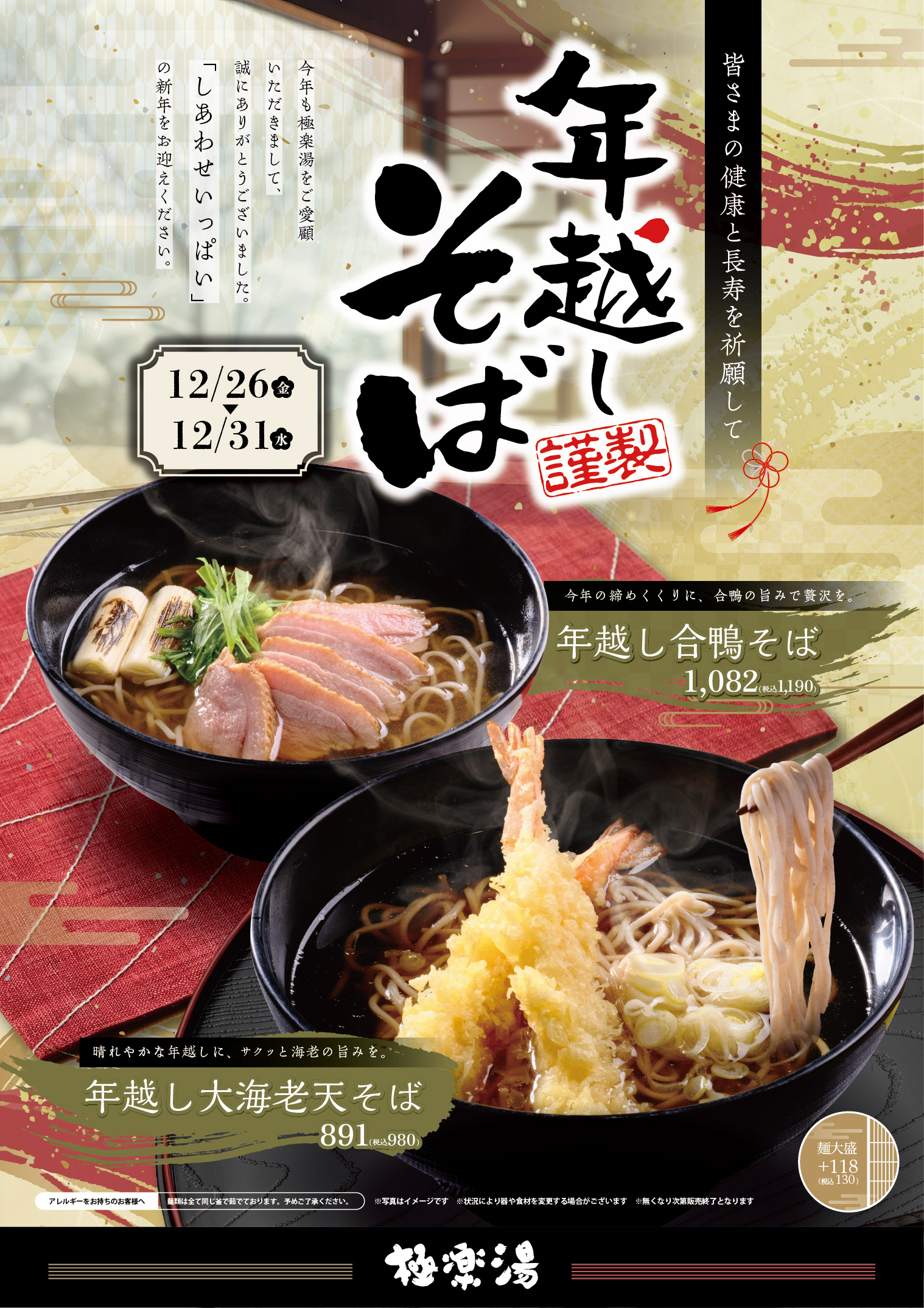 極楽湯・RAKUSPAにて、『年越しそば』を販売いたします!
