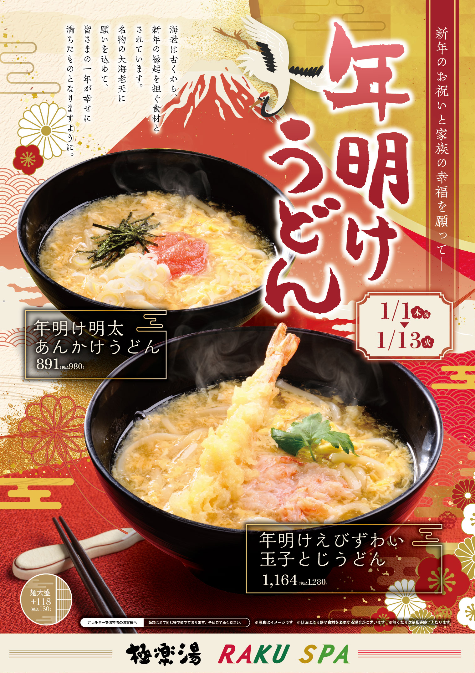 極楽湯・RAKUSPAにて、『年明けうどん』を販売いたします!